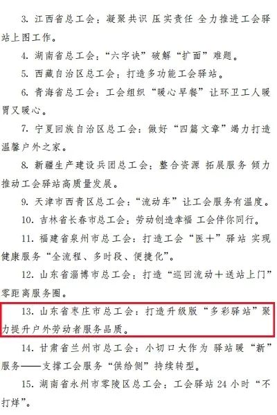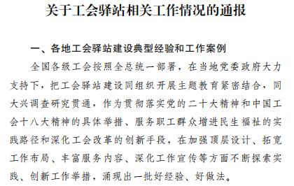 通报各地工会驿站建设典型经验和工作案例