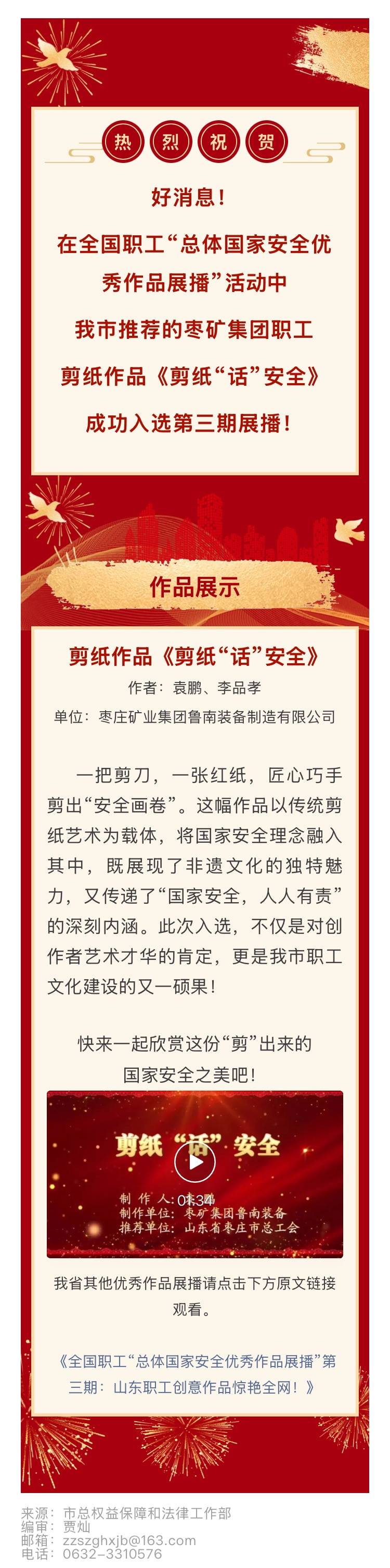 喜报!枣庄市职工创意剪纸作品荣登全国职工国家安全优秀作品展播!