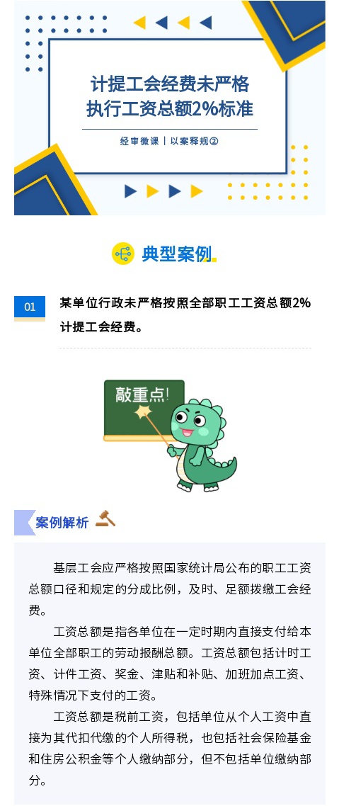 经审微课|以案释规②计提工会经费未严格执行工资总额2%标准