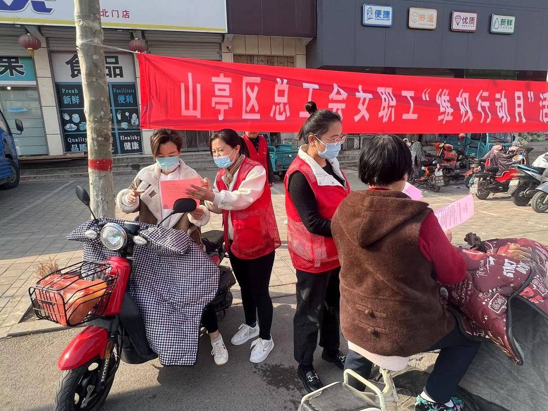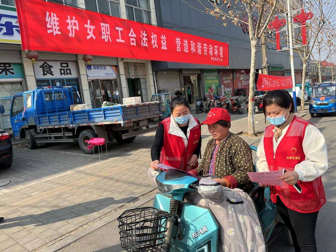 3月7日,在三·八国际妇女节到来之际,山亭区总工会开展2023年“三·八”女职工维权宣传活动,大力营造尊法学法守法用法的良好氛围,依法保障女职工合法权益和特殊利益。