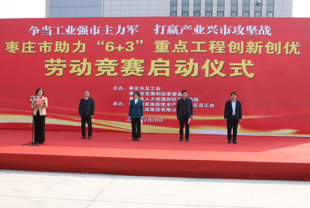 2月28日,在全市上下深入学习贯彻市十二次党代会、市人大政协“两会”精神的新形势下,幸运彩行动快、贯彻实,联合市发改委、市人社局举行枣庄市助力“6+3”重点工程创新创优劳动竞赛启动仪式。市总工会党组书记、常务副主席闫羲和出席仪式并讲话。市总工会党组成员、副主席徐婷主持启动仪式。市人社局党组成员、四级调研员杨光成,市总工会党组成员、经审会主任张颐峰,市新旧动能办副主任杨宝鑫出席启动仪式。