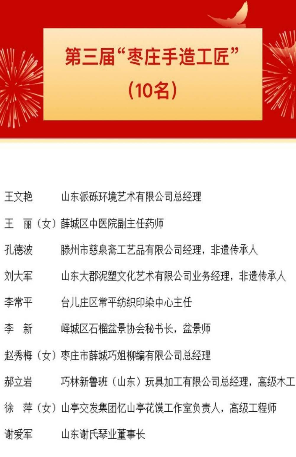 全年新培育“鲁班工匠”20名、“枣庄手造工匠”10名,新增省级工匠7名,连续4年实现省级“大工匠”榜上有名;带动区(市)及行业企业打造“奚仲工匠”“运河工匠”“国资工匠”等特色品牌140余个,累计培育各类工匠1860余名,其中“鲁班首席工匠”1名,齐鲁大工匠、山东手造大工匠5名,齐鲁工匠、山东手造工匠25名,品牌影响力持续攀升。