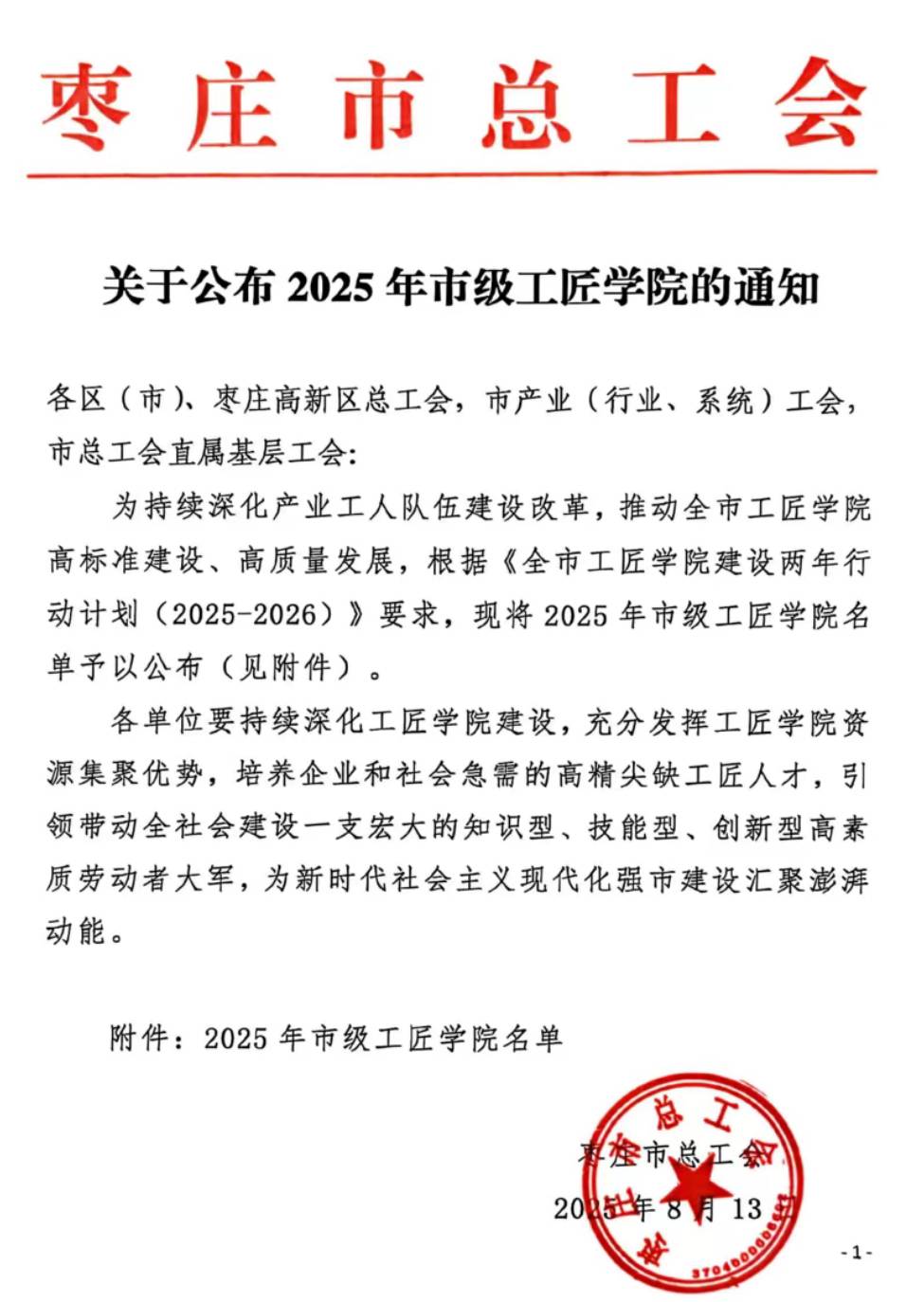 以“鲁班文化”为根脉,构建多层次、特色化工匠品牌体系,擦亮枣庄“工匠之城”名片。