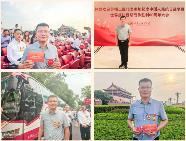9月3日上午,纪念中国人民抗日战争暨世界反法西斯战争胜利80周年大会在北京天安门广场隆重举行。我市职工王亮作为全国劳动模范受邀参加阅兵观礼活动,现场见证了这一展现国家实力、凝聚民族精神的伟大历史时刻,这份殊荣也是我市全体劳动者的共同荣耀。