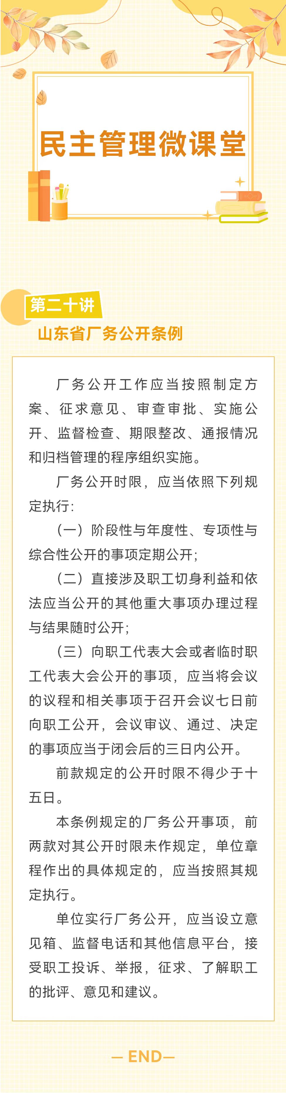 【民主管理微课堂】第二十讲——山东省厂务公开条例